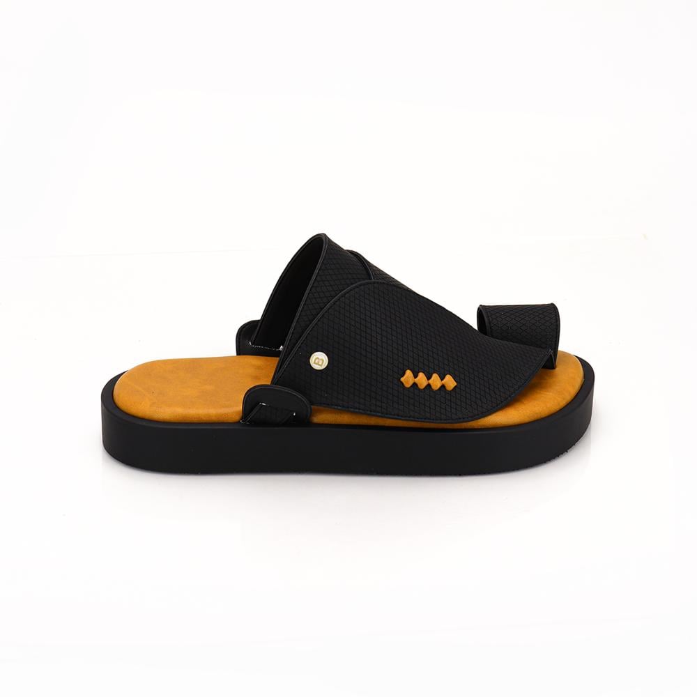 ٣١٠نعال شرقي جلد طبيعي - نقشة - لون اسود فاخر دعسة زعفراني طبي مدعم.