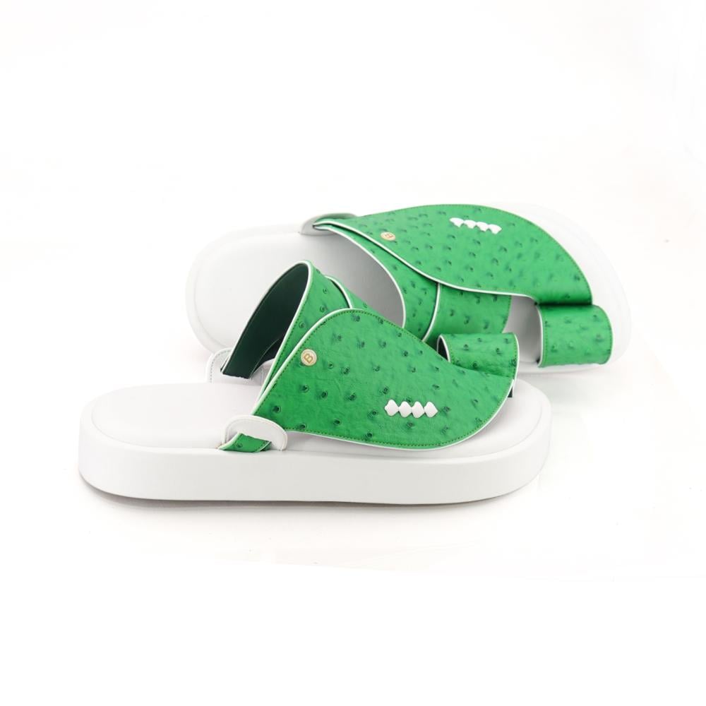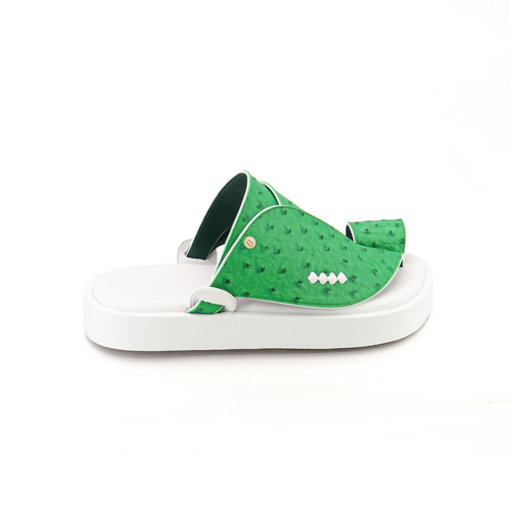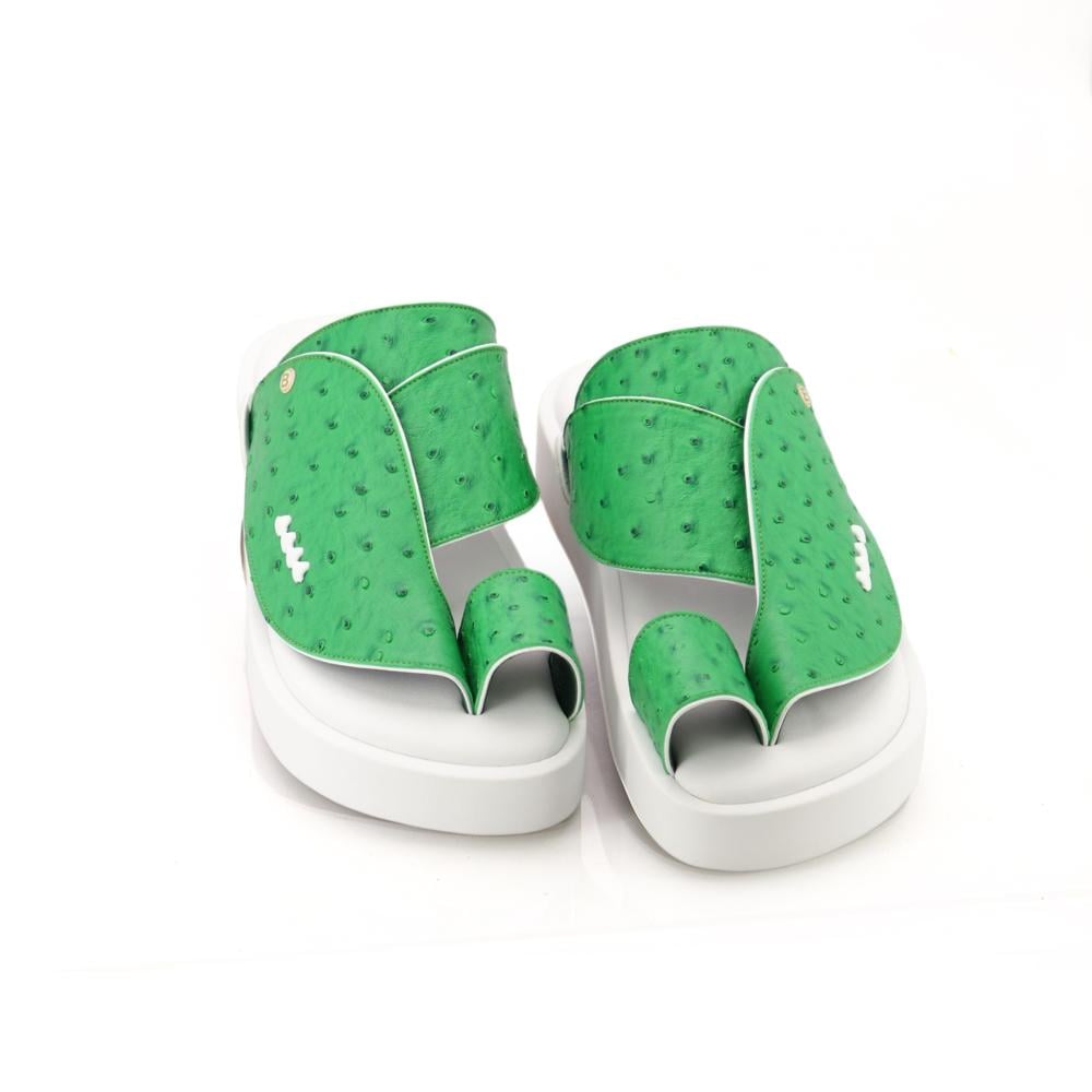 ٣٨٠نعال شرقي جلد نعام - لون اخضر فاخر دعسة طبية مدعمة ابيض ثلجي