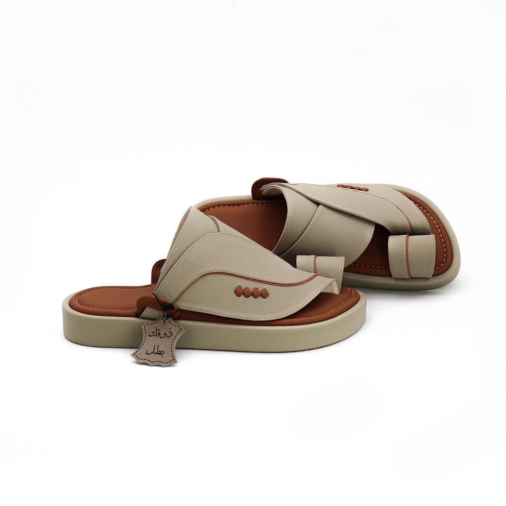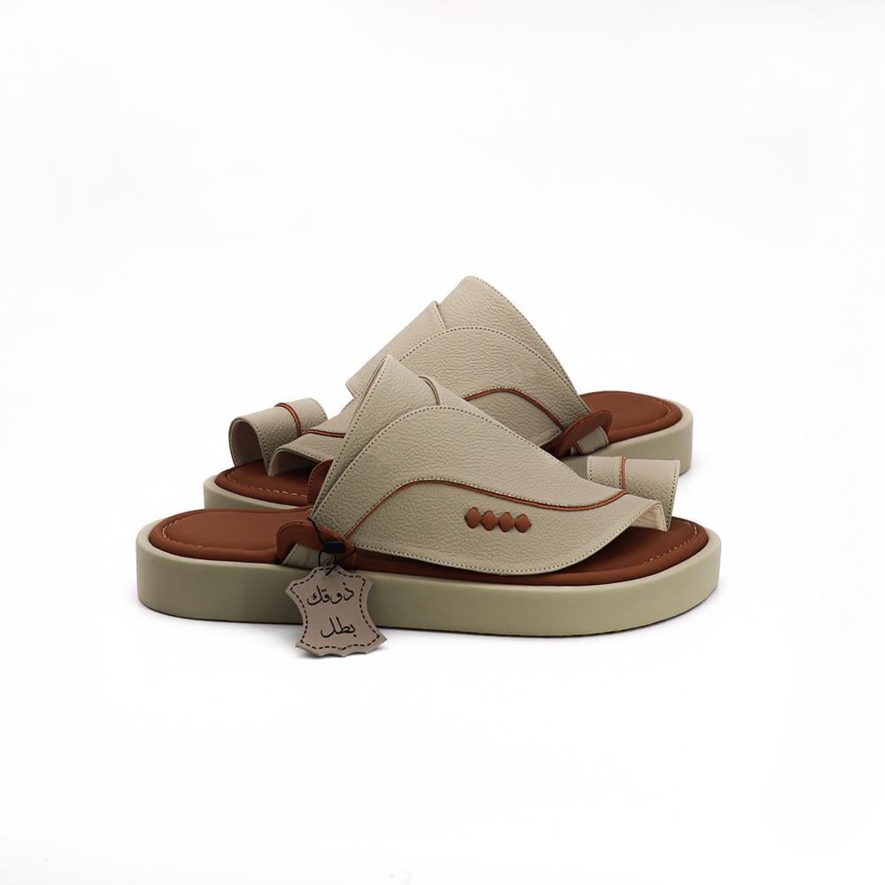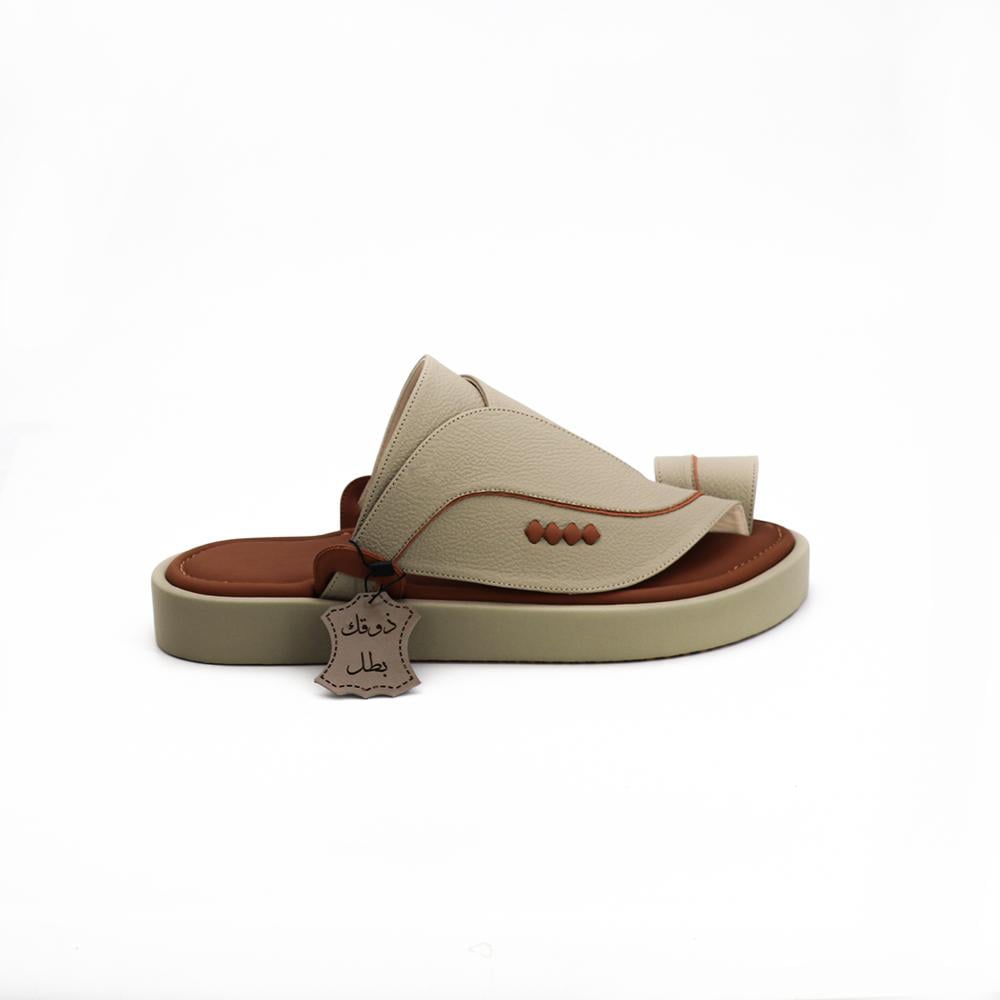 ٢٩٠نعال شرقي جلد طبيعي - ديكور - لون بيج فاخر دعسة طبي مدعم لون عسلي.
