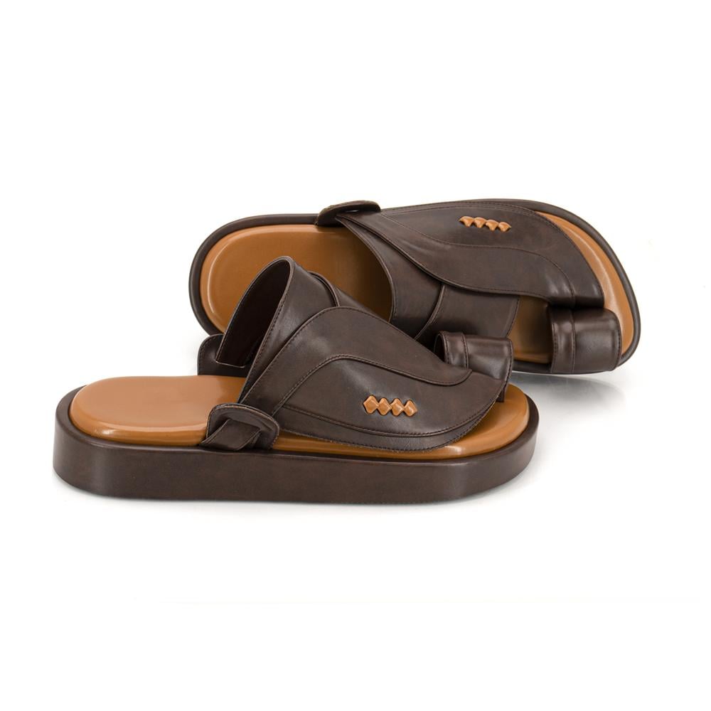 ٢٩٠نعال شرقي جلد طبيعي - ديكور - لون بني محروق مموج فاخر دعسة عسلي طبي مدعم.